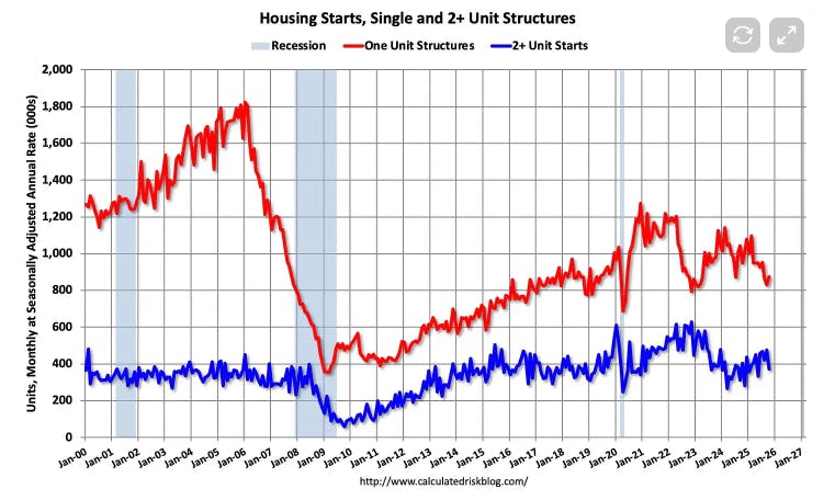 You're standing at the bottom of a valley. 2025 just took us down into that valley... housing starts declined, the market cooled, prices stabilized or even softened in many areas.